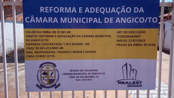 Câmara Municipal PLACA DAS OBRAS QUE ESTA SENDO REALIZADA NA CÂMARA MUNICIPAL DE ANGICO/TO Mais fotos